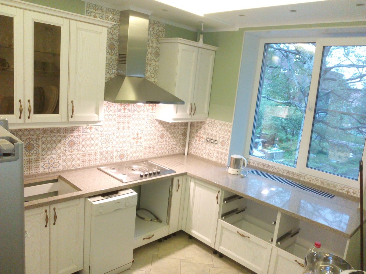 Угловая кухня с подоконником